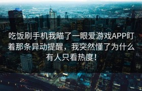 吃着饭,刷着手机,眼角瞥到爱游戏APP弹出一条“异动提醒”——某款游戏的热度突然飙升。我盯着那条通知...
