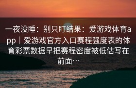 看懂这条线,思路就变了:爱游戏APP|爱游戏体育app刚更新的赔率数据让我警觉… 刚打开爱游戏APP...