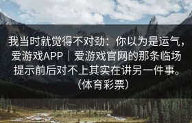 我当时就觉得不对劲:你以为是运气,爱游戏APP|爱游戏官网的那条临场提示前后对不上其实在讲另一件事。(体育彩票)