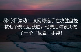 😲 激动! 某网球选手在决胜盘挽救七个赛点后获胜,他赛后对镜头做了一个“反差”手势! 在网球比赛中,...
