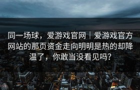 同一场球,爱游戏官网|爱游戏官方网站的那页资金走向明明是热的却降温了,你敢当没看见吗?