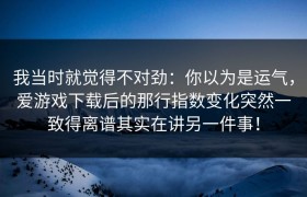 我当时就觉得不对劲:你以为是运气,爱游戏下载后的那行指数变化突然一致得离谱其实在讲另一件事! 下面...