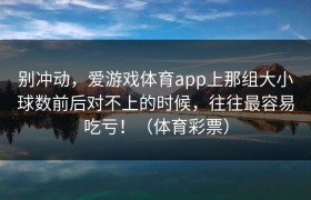 别冲动,爱游戏体育app上那组大小球数前后对不上的时候,往往最容易吃亏!(体育彩票) 很多人在爱游戏...