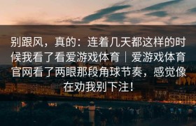 别跟风,真的:连着几天都这样的时候我看了看爱游戏体育|爱游戏体育官网看了两眼那段角球节奏,感觉像在劝...